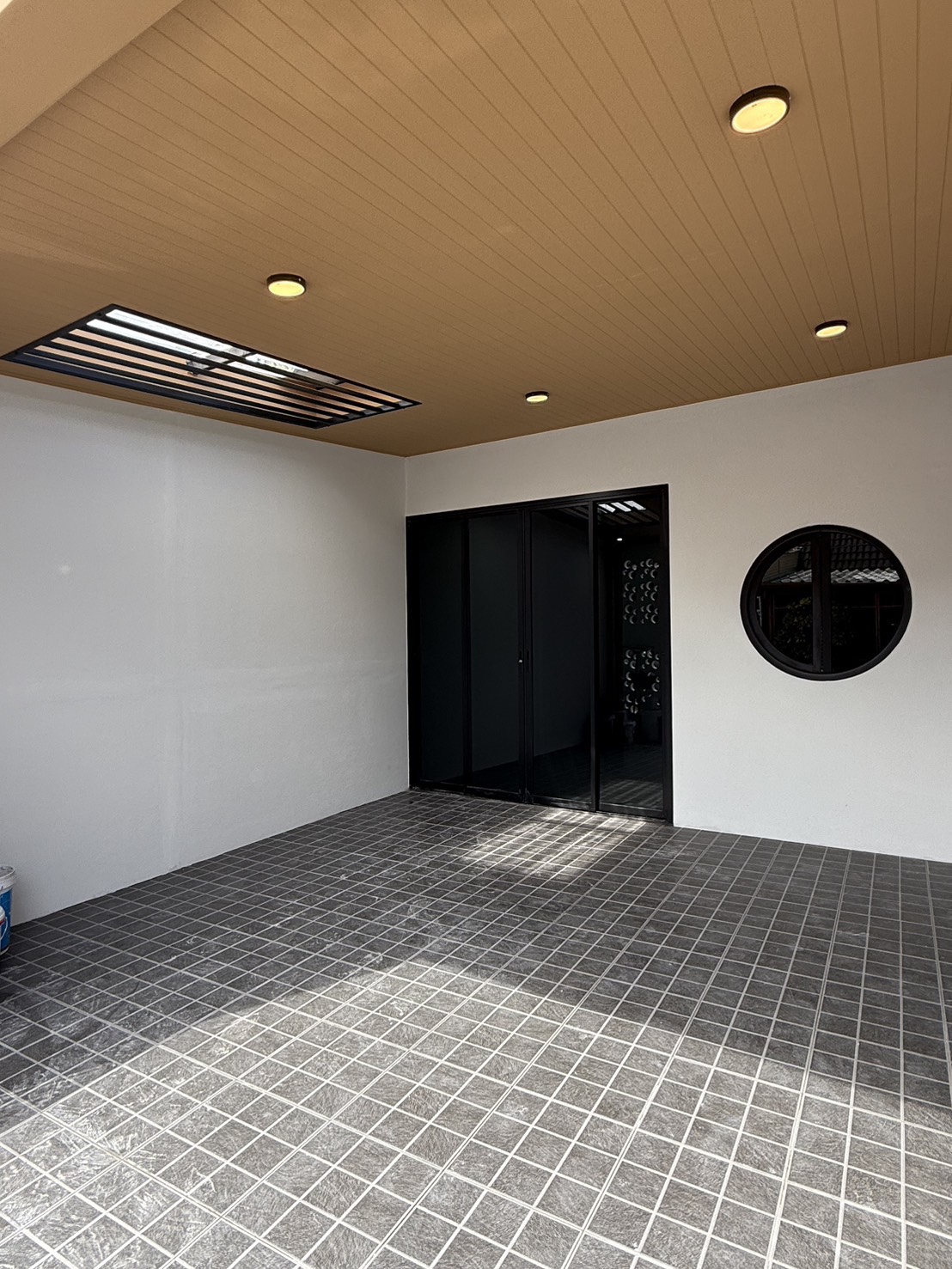 ทาวน์เฮ้าส์หลังนี้มีพื้นที่จอดรถสำหรับ 1 คัน เพื่อความสะดวกสบายในการจอดรถส่วนตัว นอกจากนี้ โซนครัวยังได้รับการต่อเติมและติดตั้งเคาน์เตอร์เรียบร้อย ทำให้พร้อมใช้งานทันที