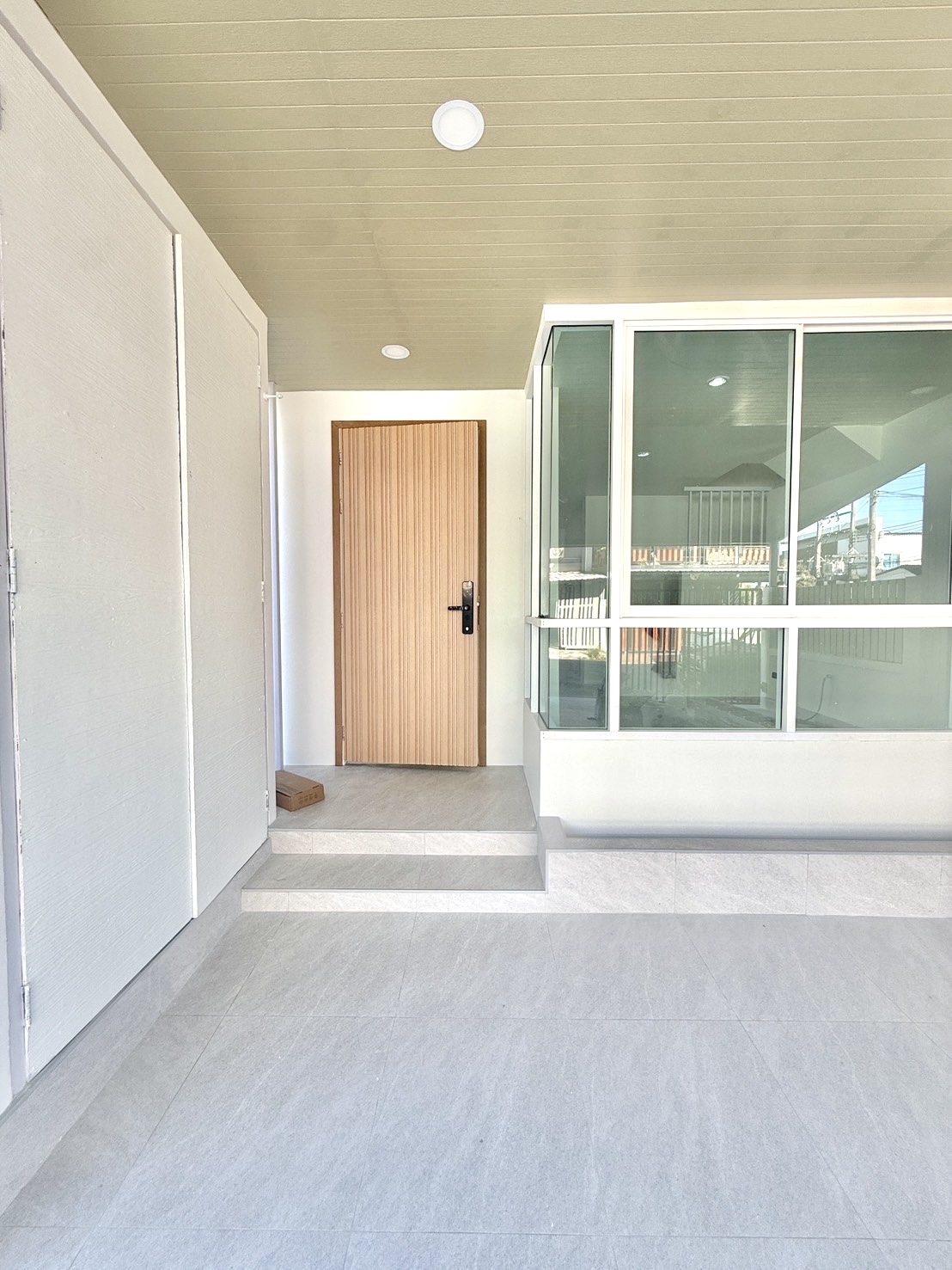บ้านหลังนี้มีพื้นที่จอดรถที่ต่อเติมหลังคาเรียบร้อยแล้ว สามารถจอดรถยนต์ได้ 2 คันอย่างสะดวกสบาย