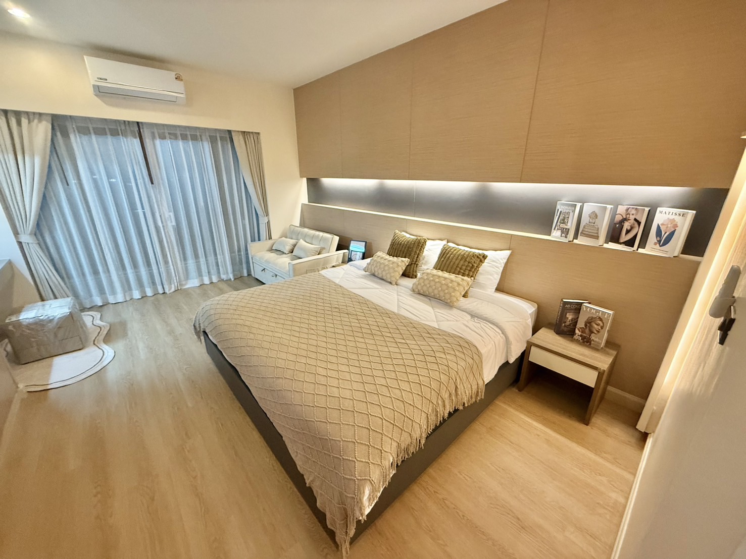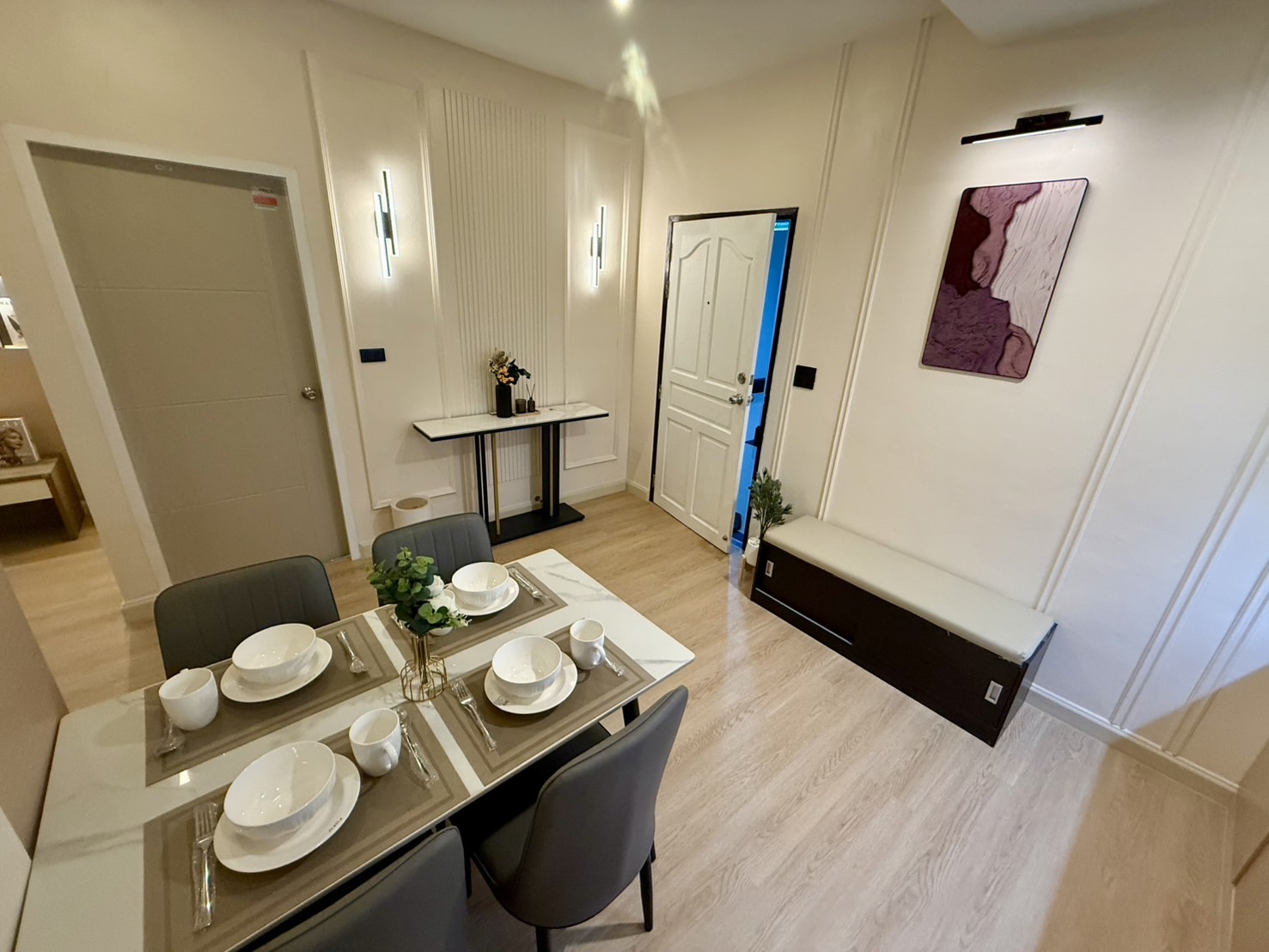 คอนโดมีพื้นที่ใช้สอย 42.50 ตารางเมตร มาพร้อมเฟอร์นิเจอร์บิ้วอินครบชุด รวมถึงสมาร์ททีวี 40 นิ้ว และเครื่องปรับอากาศใหม่ 1 ตัว นอกจากนี้ยังมีโซฟาเบดที่ปรับนอนได้และปูพื้นด้วยกระเบื้องยาง SPC click lock อย่างดี